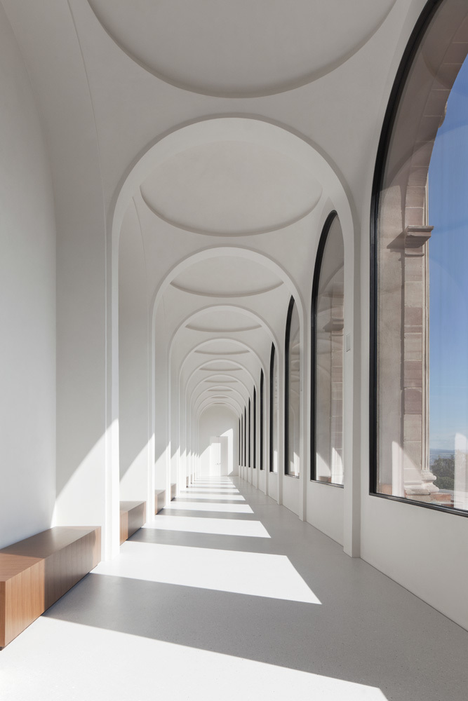 Im Obergeschoss wird die Raumfolge der Oberlichtsäle erweitert und die Qualität der Säle als Tageslichträume mit dem Einbau einer modernen Tageslichtdecke gestärkt.
