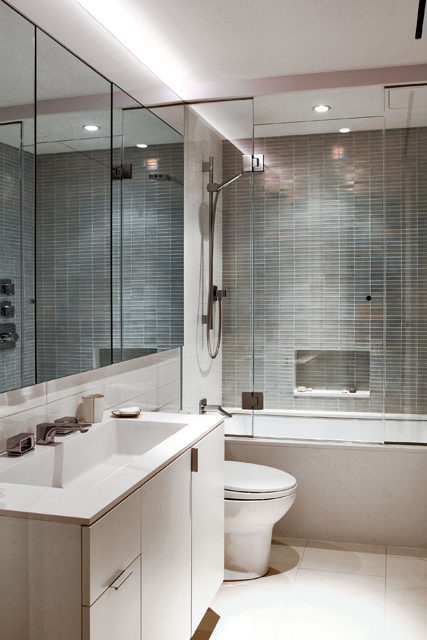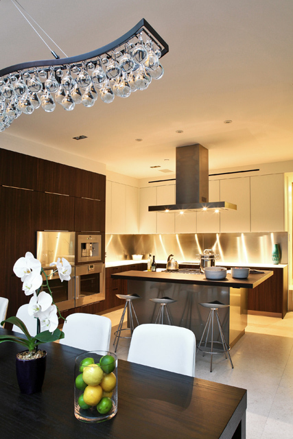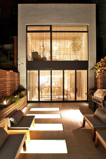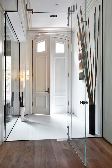 The four story townhouse at 67 Charles is situated on a charming tree lined block in the heart of the original Greenwich Village Historic District. Originally constructed as one of a series of three rowhouses in 1867 by Bartlett Smith, the brownstone facade and painted wood cornice is a typical example of the French Second Empire style common to rowhouses built in that period. While the front facade has remained relatively unchanged throughout the building’s history, the interior has seen several renovations throughout the years which were less than kind to its historic bones. Several historic details on the parlor level including base and crown mouldings, a ceiling medallion, and fireplace mantles throughout the house had managed to survive. These historic elements were very dear to the clients, yet they also recognized the value of contemporary space planning, details, and amenities. Their design directive to TCA was threefold: to preserve these historic elements; to create a dialogue between these preserved elements and a decidedly contemporary envelope; and to create a functioning layout complete with modern amenities that would serve the family into the future. In response, TCA created an architectural language to highlight the moments where old and new would interact. Original base and crown mouldings appear to pass through glass entry vestibules at both the garden and parlor levels. Recessed metal reveals encircle the perimeter of preserved fireplace mantles demarcating old and new. A modern chandelier is juxtaposed against a restored ceiling medallion. Door jambs lined in non-directional stainless steel discreetly celebrate the use of contemporary reveals, without diminishing the texture and finesse that the owners so cherished in the preserved original mouldings. The new home demonstrates at every scale how the old and new can complement and enhance each other.