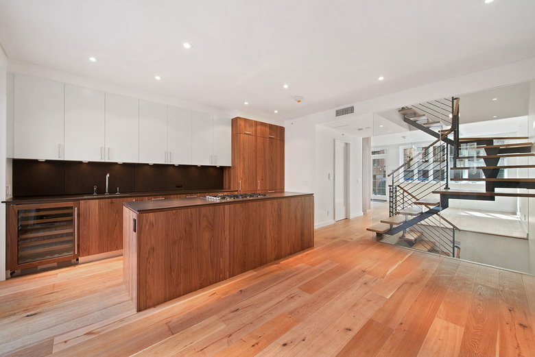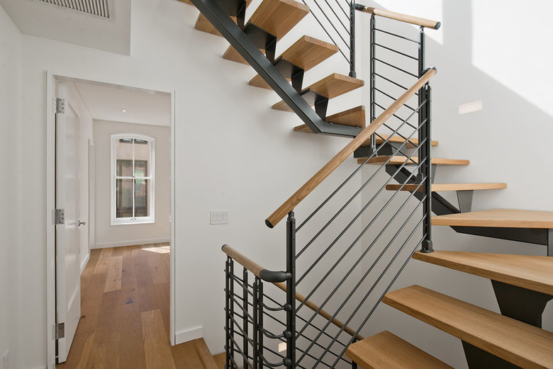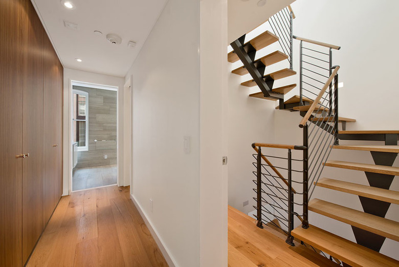 Upon entering the new 4-story home, people are greeted with a sense of an airy and light feel marked by a casual yet chic open floor plan, skylights, large windows, open-riser stairs, and light-colored woods. The open stairwell strategically adds height into the narrow space in a visually appealing way. The clean, sophisticated look of the stairs themselves enhance the aesthetics of the surrounding area.