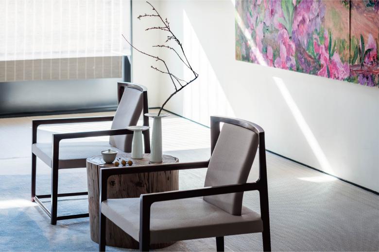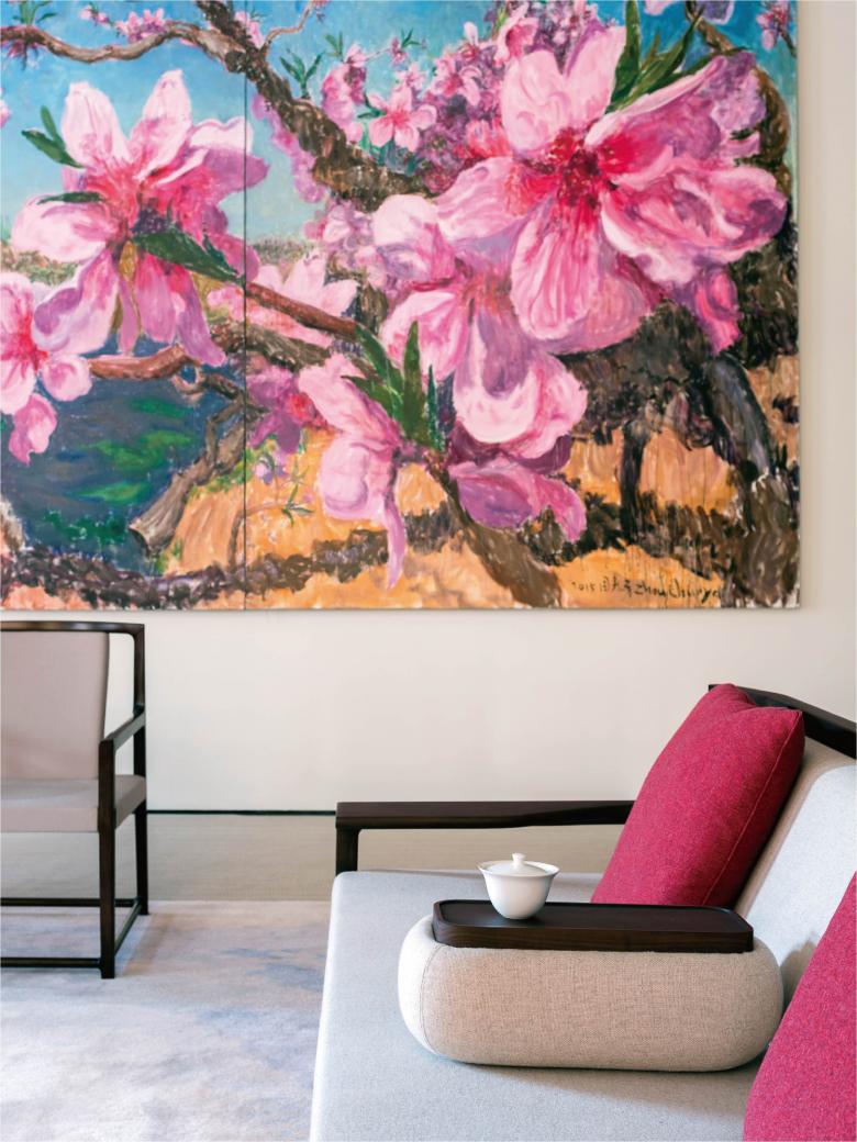 As the spirit of the brand, we give the space a lot of white space. “Space" is a white, open, and quiet space that allows time to stop; it is a time and space that allows thoughts to settle down and the mind to rest. The so-called "space. Space" is a journey of rest and recuperation of "meditation, fixation, peace of mind and continuity". Art, tea ceremony, meditation, floral art, the space is full of the pursuit of "elegance", modern people in the fast and noisy life, the most valuable is a quiet place, we use the traditional Chinese "frame" as the basic design, from the garden, window view, space partition, from outdoor to indoor, become a peach blossom source of mood, calm and relaxed, push the door into the room, spacious space with a height of five meters. The spacious space with a height of five meters is a piece of "heaven and earth". The only way to start again is to empty your mind and wash it away from the hustle and bustle.
