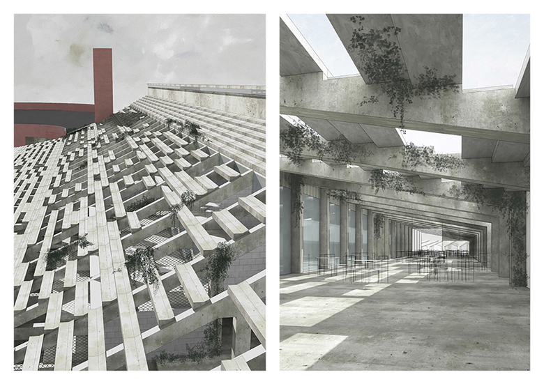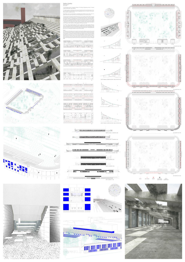 The subject of my diloma project is a conceptual design of the abandoned Masaryk stadium, one of the biggest brownfields in Prague. The main goal is to find a general solution to the current situation, when there is an impressive relic of two historic periods with specific traditions, which is not functional nor economically viable.