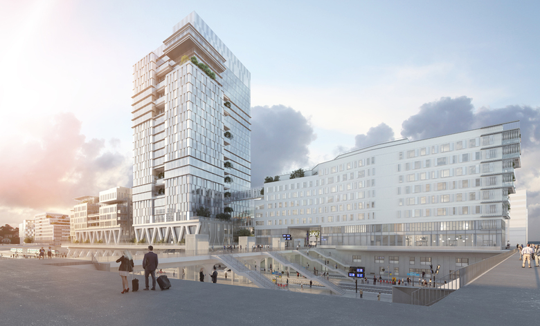 By 2021, this 74 000 m² facility will bring together on a single site nearly 4000 collaborators from the original headquarters as well as the the additional sites of the Vinci group. The architectural project for the “Groues” area is the result of a competition presided over by a jury composed of : Xavier Huillard, CEO of Vinci, Patrick Jarry, president of the Epadesa and mayor of Nanterre, and Hugues Parant, managing director of the Epadesa.