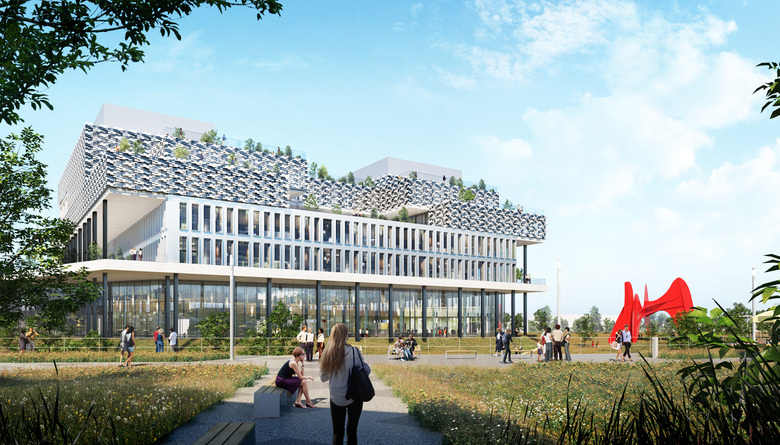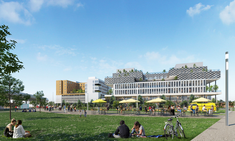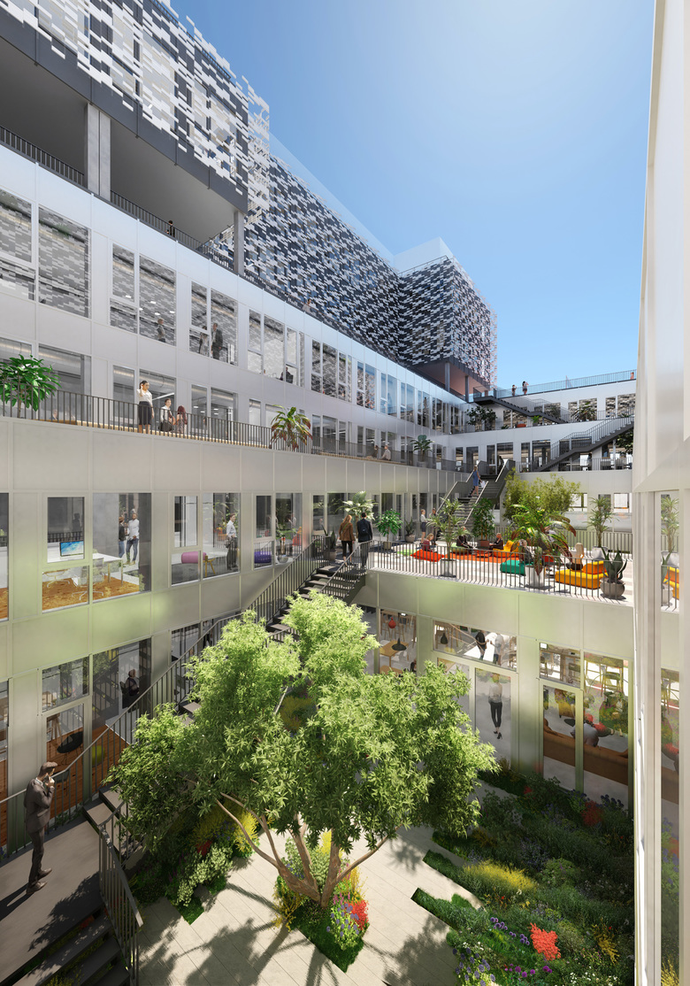 This first 6-story building will gather working and co-working spaces, a modular agora and meeting rooms.