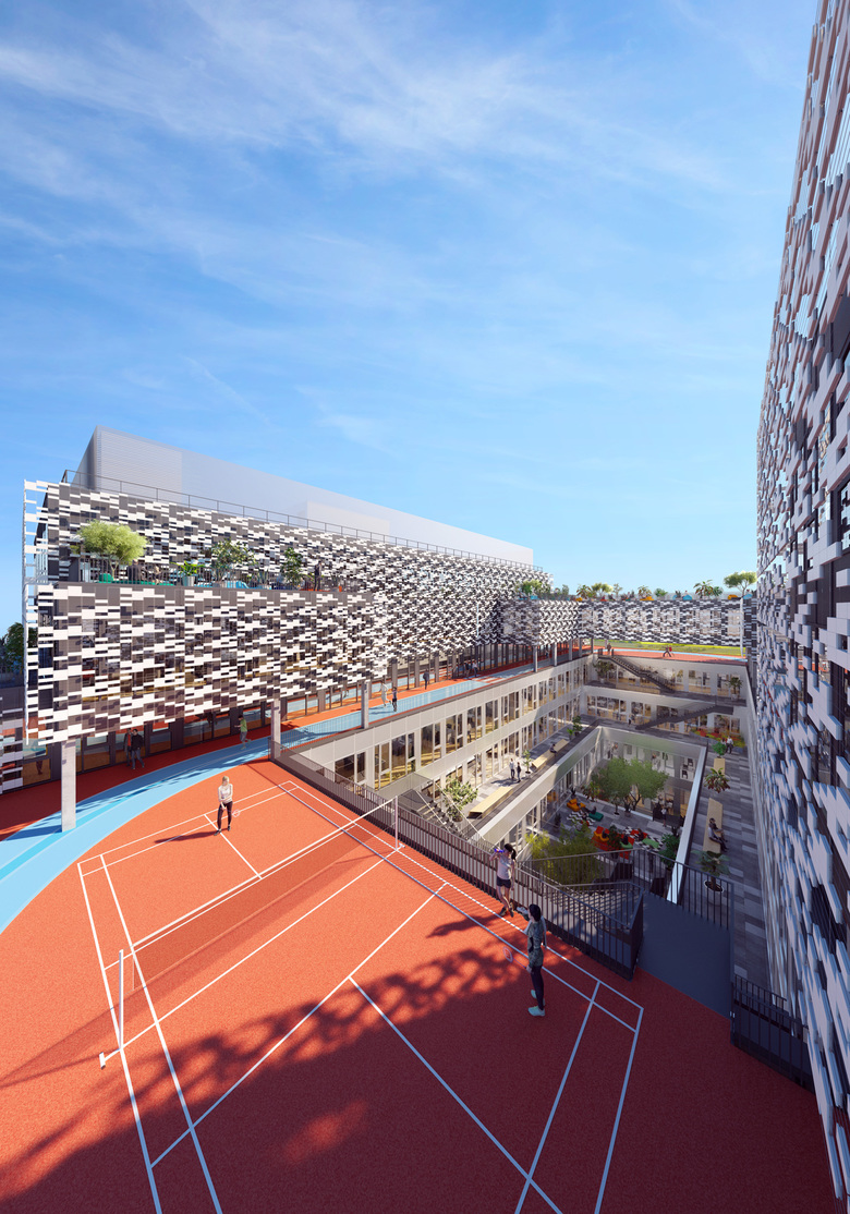Seen from the outside, the building is a reflection of the project with a wide diversity of facades, spaced out levels creating terraces and outdoor walking paths.