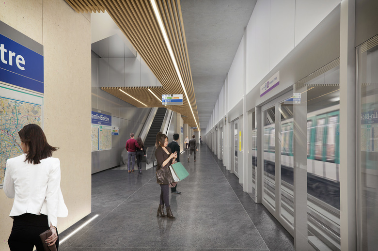 Historically, the urban evolution of the area has long suffered from the presence of the highway. The new urban plan, the upgrade of the Rue Gabriel Péri, the evolution of the Bicetre University Hospital and the presence of the new station are all part of a major development project for the area. The station is located along the Rue Gabriel Péri, overlooking Paris. The pedestrian spaces will offer a view on the capital while the train platform is accessible 22 meters below ground level.