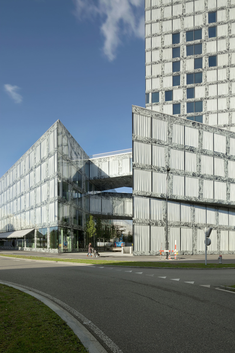 The Allianz Headquarters is a hybrid-office and the pinnacle of a master planned mixed-use district on the edge of Zürich’s city center. Comprised of a 20-story tower and a 5-story annex, these two components are externally linked by a series of four bridges, and vertically linked by numerous interior voids and staircases; as such, the Allianz Headquarters can be experienced as horizontal and vertical landscape of neighborhoods. Fluidly connected to the city center by a multitude of public transportation options, the building encourages the blossoming of twenty-first century office culture, which demands flexibility in space and its use, via its hyper-hybrid programming that amplifies ‘interiority’.