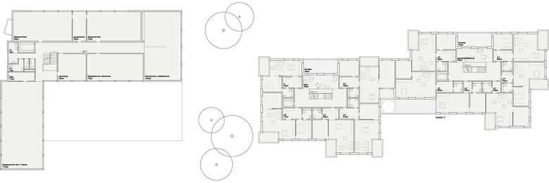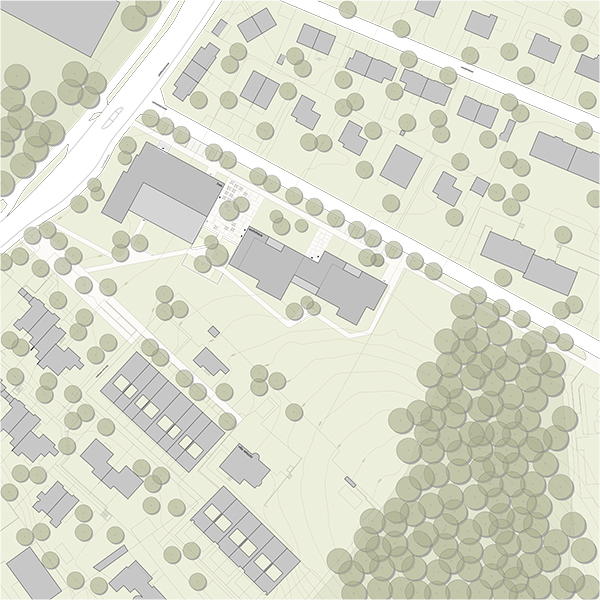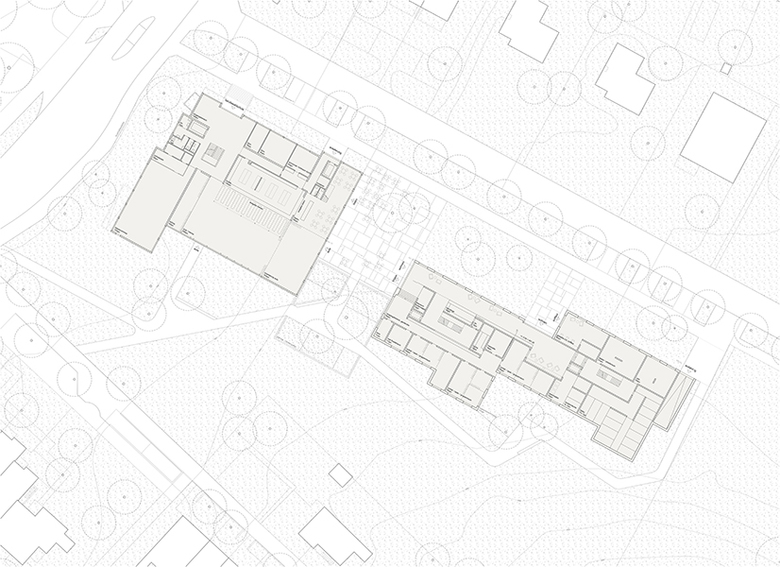 Als unabhängige Baukörper gewährleisten Wohnhaus und Schule optimale interne nutzungsangepasste Betriebsabläufe, wichtige Autonomie im Unterhalt und langfristig differenzierte Entwicklungsszenarien für die unterschiedlichen Nutzungen– ein pragmatischer und kostenbewusster Entscheid für Realisierung und Betrieb.