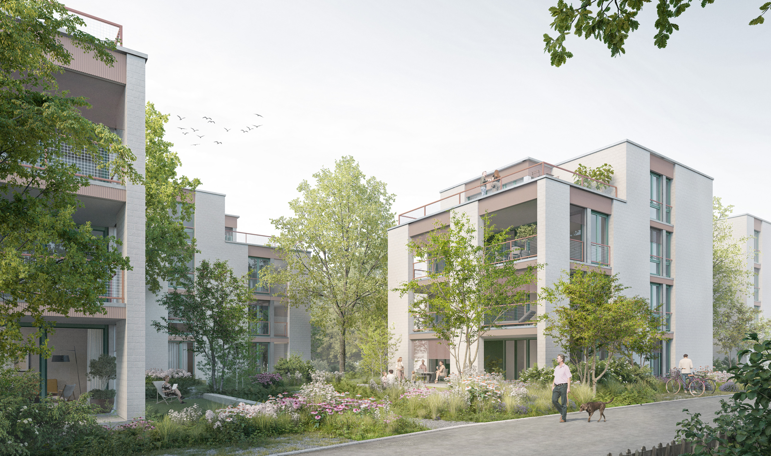 Das Projekt verbindet eigenständige Baukörper mit der nachbarschaftlichen Körnung und hoher Durchgrünung, wobei offene Lauben gemeinschaftliche Räume mit gartenbezogenem Charakter schaffen. Grosszügige Loggien und eine dreiseitige Ausrichtung der Wohnbereiche steigern die Wohnqualität und setzen die Gebäude in spannungsreichen Kontrast zur Umgebung.