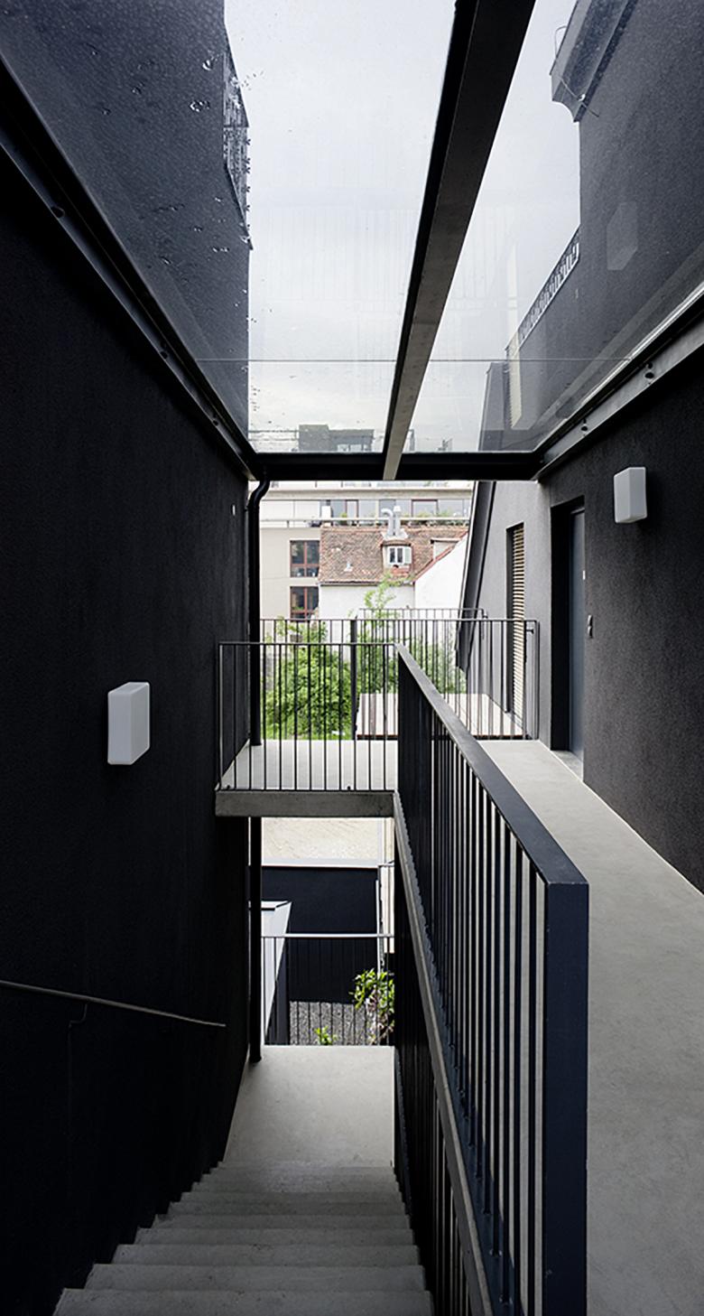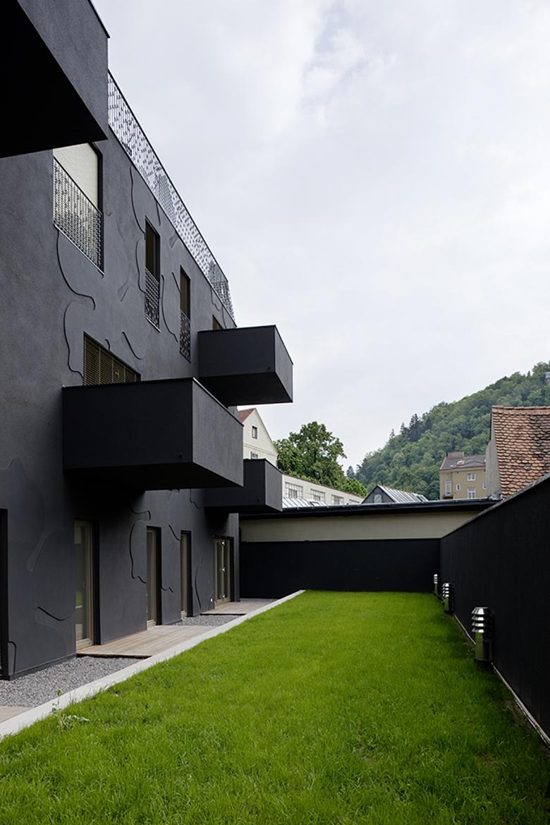 Das Projekt unterstützte auch das Renovierungsprogramm des Landes, das soziale Abwechslung durch kostengünstige Vermietungen ermöglicht. Durch die Einbeziehung einer erhaltenen, quadratisch verkleideten Struktur aus der Barockzeit des späten 18. Jahrhunderts mit einem Neubau im Innenhof wurde das Gebäude „Rose am Lend“ bewusst in den komplexen historischen und zeitgenössischen Kontext gestellt.