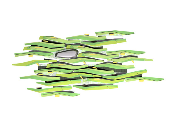 此类构造的居民社区互相交织并由能解读气候数据的传感网连接在一起。一旦警报声响,整个社区就会像一个有机整体,对自然环境带来的挑战做出集体反应,仅几秒钟内就全部陷入地下。过去的科学技术总让人们联想起霍桑的画--一列喷火的列车,带着一条黑烟,呼啸着在无辜的森林中穿行,然而,现代科学给人们的印象已开始慢慢转变,驾驭自然的野心逐渐变成与自然合一,回应自然的渴望。尽管龙卷风暴肆意咆哮燃烧,但整个社区却在地下安全地睡着了。