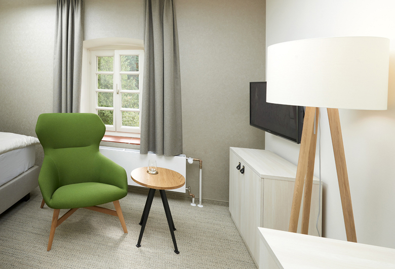 Differenziert und gleichzeitig harmonisch, sind hier emotional nahbare und positiv empfundene Räume entstanden, die Patienten in ihrer Gesundung durch Aufenthaltsqualität und präsenztherapeutische Maßnahmen unterstützen. Das Schloss mit seinem eigenen Charakter kommt dabei voll zur Geltung, denn die starke Gestaltung unterstreicht den Charme der Gesundheitsimmobilie.