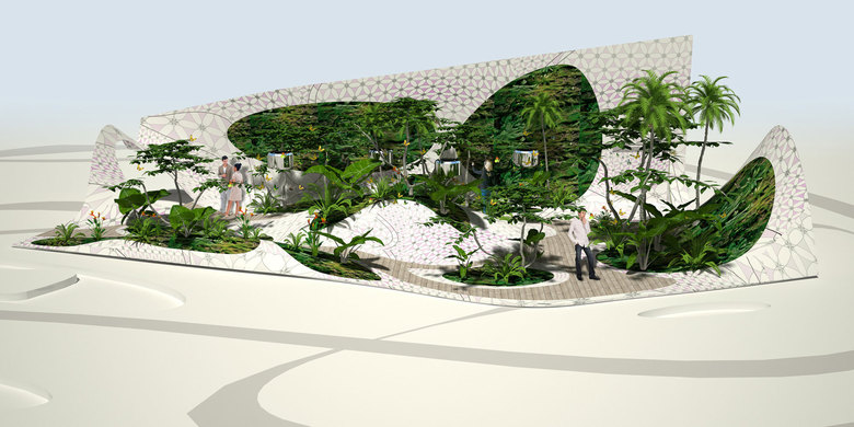 Ein Garten der Ruhe und Entspannung, umrahmt von einer Hochhauslandschaft. 3deluxe formulierte mit dem Noor Island Park eine Antwort auf die globale Herausforderung, neue städtische Räume zu entwickeln, die zugleich Anregung wie Kontemplation bieten, elektronische Medien in ihre Gestaltung einbeziehen und doch den Ort und seine Kultur ernst nehmen. Auf Noor Island entstand so ein Landschaftsgarten des 21. Jahrhunderts, in dem Technik und Natur, Licht und Schatten, Moderne und Tradition zu einem komplexen räumlichen Erlebnis fusionieren.