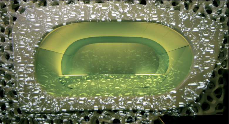 Die perforierten Wandflächen des triangulären Hauptraumes erinnern an eine permeable Zellmembran, durch deren Öffnungen der Besucherfluss stattfindet. Sie ist wegen ihres mehrschichtigen Aufbaus und ihrer Oberflächenstruktur das signifikanteste architektonische Element des Clubs. Sie wird mit einer bewegten 360°-Projektion bespielt, die in Echtzeit mit dem DJ-Set abgestimmt werden kann.