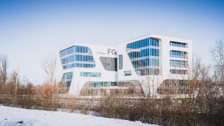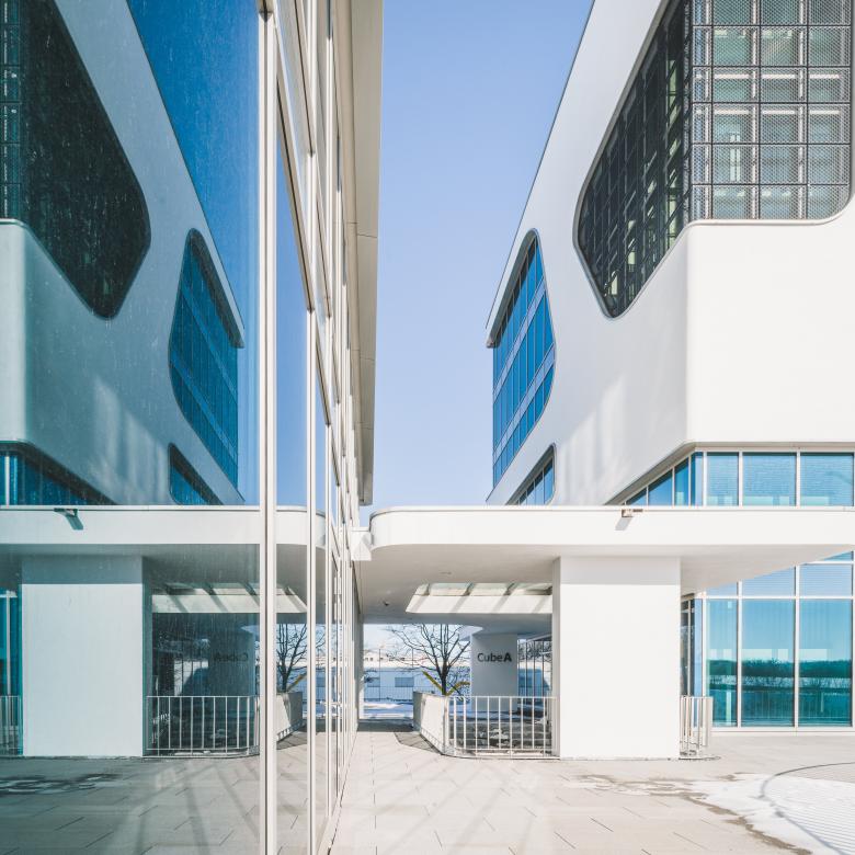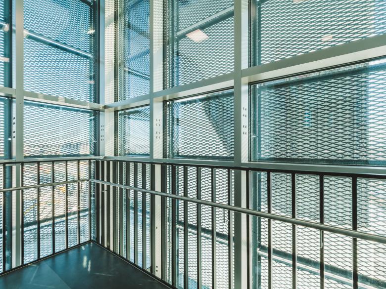 Ein Gebäude ist intelligent, wenn es nicht nur in der Gegend herumsteht, sondern auf die Bedürfnisse der Benutzer einerseits und die äußeren Einflüsse anderseits reagieren kann. Im besten Fall erhöht es den Komfort des Menschen bei gleichzeitiger Optimierung der Energie-Effizienz. Das intelligente architektonische Element des FC Campus Gebäudes ist eine im Glasaufbau integrierte Folie, die normalerweise in Apple Smartphones verbaut wird. In der Dimension einer Gebäudefassade ist das eine Weltneuheit: in die Folie integrierte interaktive Flüssigkristalle ermöglichen eine sensorgesteuerte Reduktion des Licht- und Wärmeeintrags in das Gebäude, ohne dabei die freie Durchsicht zu beeinträchtigen. Trotz großflächiger Verglasung ohne bauliche Verschattungselemente muss das Gebäude auch im Hochsommer kaum gekühlt werden.