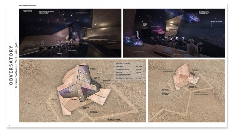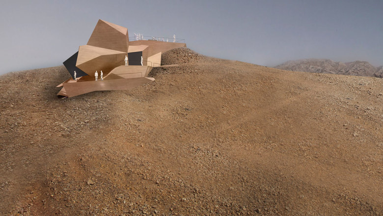 An einem der heißesten Orte der Erde, inmitten der unberührten Wüstenlandschaft von Sharjah, wird ein expressives Bauwerk von 3deluxe realisiert. Auf dem Kamm der Jebel Fayah Bergkette ist ein Aussichtsgebäude mit Observatorium und naturkundlicher Ausstellung geplant.