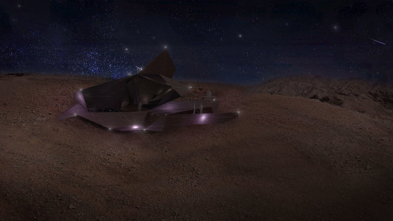 3deluxe spielt bei seinem Entwurf für das Observatorium sowohl mit den Merkmalen der umgebenden Natur als auch mit der Funktion des Gebäudes. Wie ein vom Himmel gefallener Meteorit krönt die Sternwarte den höchsten Punkt des Bergkamms. Dank ihrer exponierten Lage bildet sie ein weithin sichtbares Landmark.