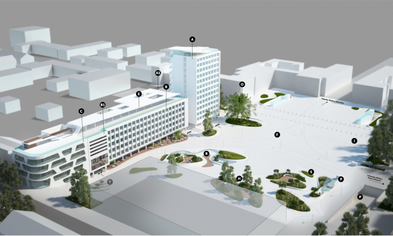2016 erhielt 3deluxe den Zuschlag für die komplette Neugestaltung des zentralen Platzes samt seiner an der Ostseite anliegenden Gebäude – drei Neubauten und zwei Sanierungen und einer Tiefgarage, die den gesamten Platz unterbaut.