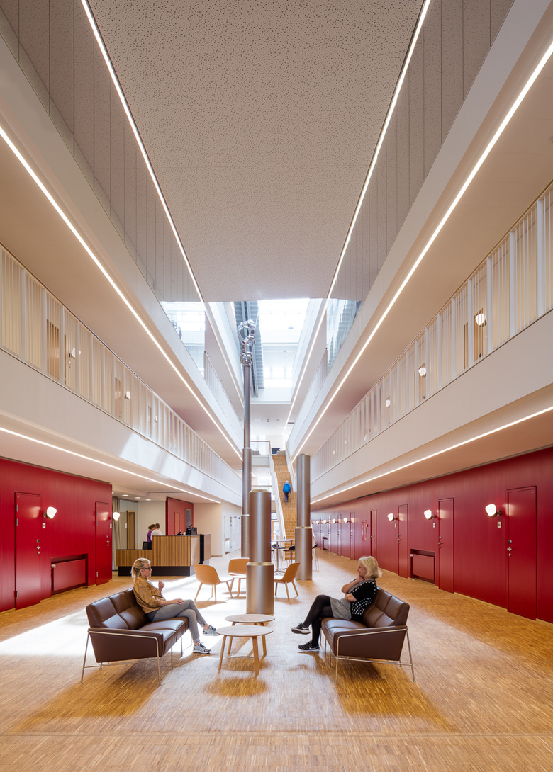 “We designed the building with these open atria to offer good visual contact, instead of the closed corridors usually associated with hospitals,” said Kim Herforth Nielsen, 3XN Creative Director and Founder. “In addition, we ensured that ample daylight and warm materials and colors create a welcoming and pleasant atmosphere, which serves as a comforting environment during a difficult period.”