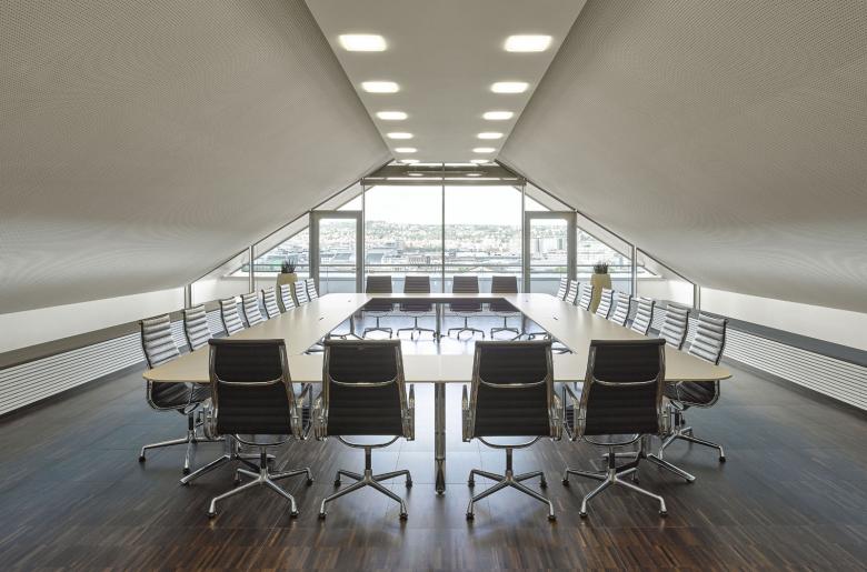 Die Bürgschaftsbank Baden-Württemberg liegt im Zentrum von Stuttgart und wird aus einem Ensemble von drei nebeneinanderliegenden Einzelgebäuden gebildet. Im Zuge der Erweiterung wurde das linke Bestandsgebäude durch einen Büroneubau mit Tiefgarage ersetzt. Dieser fügt sich mit seiner klaren und reduzierten Gestaltung stimmig in das städtebauliche Umfeld ein. Der Neubau wird ausschließlich als Bürogebäude genutzt und umfasst zusätzliche Büroflächen sowie eine Cafeteria. Im vierten Obergeschoss befindet sich ein Besprechungsraum mit vorgelagerter Terrasse und attraktivem Ausblick auf die Stadt. Ein eingeschossiger, zu beiden Seiten transparent gestalteter Gebäuderiegel dient als Eingangsbereich und verbindet Neubau und Bestand miteinander.