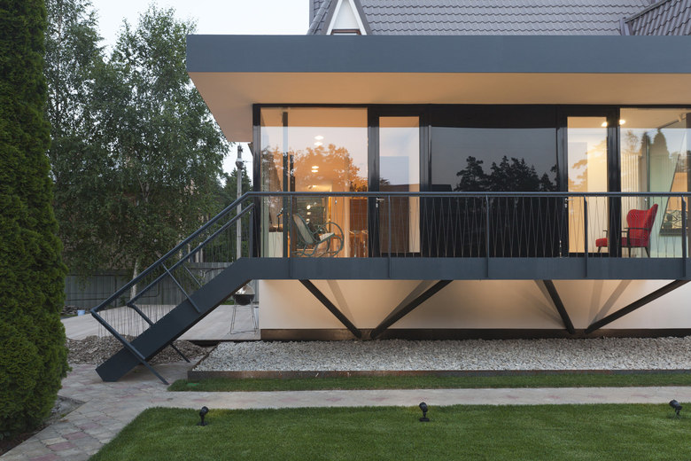 Ein helles, geräumiges und offenes Haus – das war der Wunsch des Bauherrn und damit das Leitbild für 4a Architekten bei der Umgestaltung des Wohnhauses in Moskau. Im Dialog entstand eine eindrucksvolle Neuinterpretation des bestehenden Gebäudes aus den 90er Jahren, das mit 350 m2 Wohnfläche künftig einer vierköpfigen Familie und zugleich zahlreichen Kunstobjekten Raum bietet. Dabei hat sich das ursprüngliche Erscheinungsbild des Wohnhauses stark gewandelt. Obgleich die bestehende Gebäudestruktur weitgehend erhalten blieb, zeigt das Wohnhaus ganz neue Facetten: Ein großzügig verglaster Baukörper mit vorgelagerter Rampe schiebt sich aus dem bestehenden Volumen und schafft eine neue, prägnante Eingangssituation. Dabei greifen Form und Gestalt bestehende Strukturen und Achsen auf, interpretieren diese jedoch zeitgemäß mit der Handschrift von 4a Architekten neu. Markant und zugleich behutsam schmiegt sich die verglaste Hülle um den Bestand und schafft einen sanften Übergang von Bestehendem und neu Gebautem. Auch im Innenraum hat das Wohnhaus eine beeindruckende Wandlung erfahren. Seit dem Umbau gehen die unterschiedlichen Bereiche der Eingangsebene fließend ineinander über. Die ehemals kleinteilige Grundrissstruktur wurde durch das Entfernen nichttragender Wände aufgelöst. Eine offen gestaltete Wohnlandschaft mit Wohn- und Essbereich, Kamin und Küche bildet nun den Mittelpunkt des Hauses. In dieser Gemeinschaftszone herrscht eine angenehme Großzügigkeit mit viel Bewegungsfreiheit. Ein Luftraum mit offenem Treppenaufgang verbindet Erd- und Obergeschosse miteinander. Im Zusammenspiel mit der großflächigen Verglasung, die einen herrlichen Ausblick auf das 2.500 m2 große Gartengrundstück bietet, entsteht ein weitläufiges Raumgefühl. Die beiden Obergeschosse dienen als privater Rückzugsraum. Das Elternschlafzimmer mit Ankleide, Bad und frei stehender Badewanne befindet sich im ersten Obergeschoss, ganz oben liegen die beiden Kinderzimmer sowie ein weiteres Bad. Im Untergeschoss bietet ein Freizeitraum mit Zugang zum Garten sowie ein Saunabereich hohe Aufenthaltsqualität.