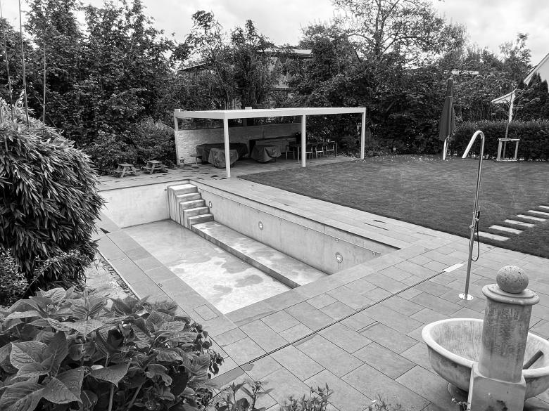 Umgebungsgestaltung mit Schwimmbad und Pergola