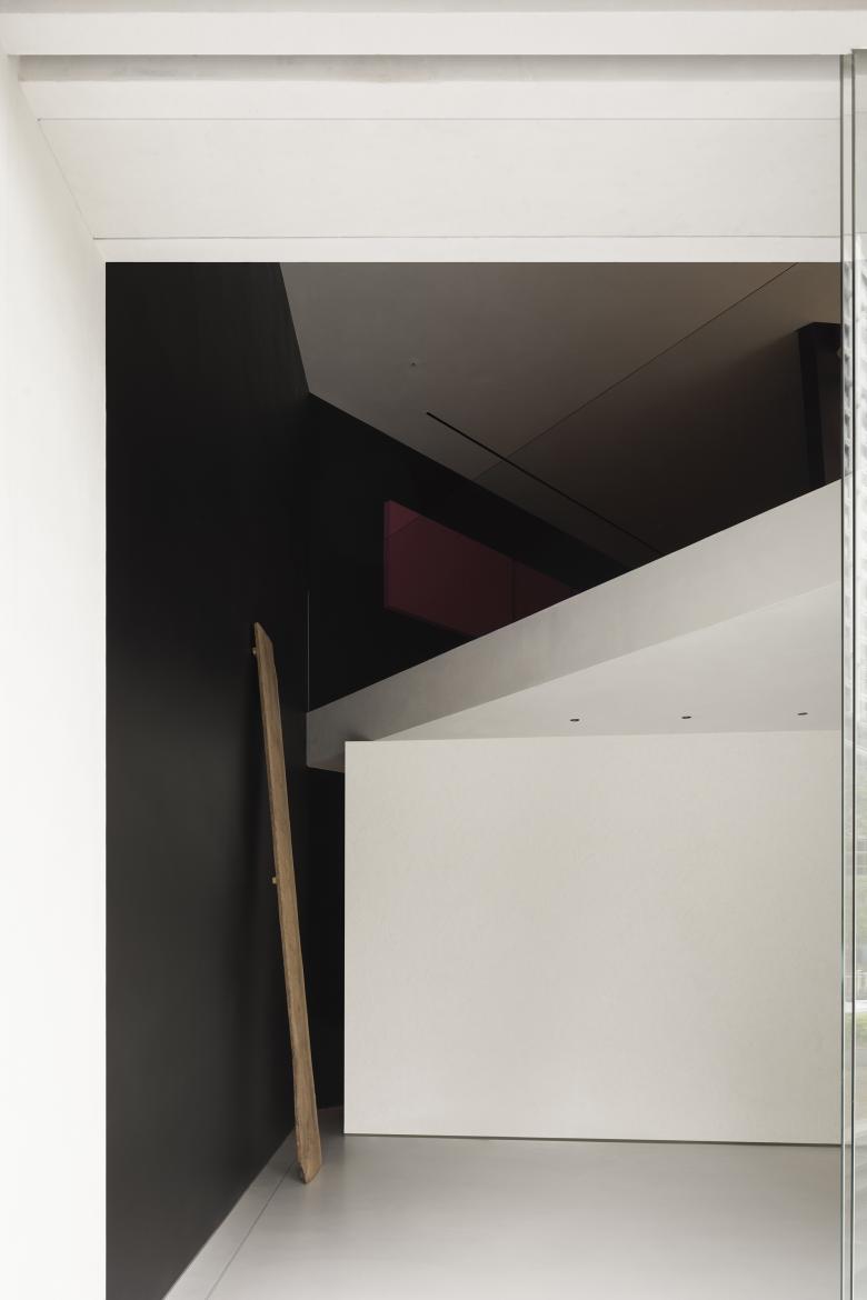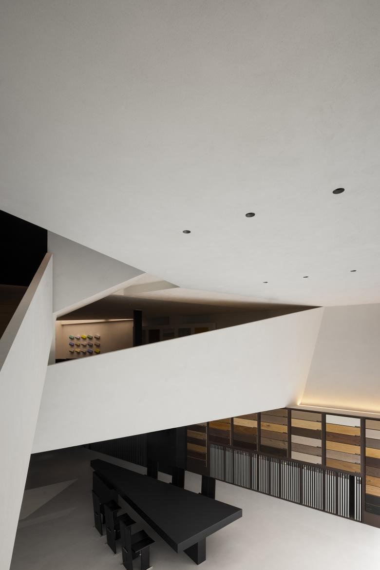 The narrowing entrance seamlessly integrates the exhibition hall with the communication area, creating a well-balanced spatial environment that enhances customer interaction with the products. This compressed entryway provides a subtle and restrained prelude for guests as they enter the hall. Inside the main space, customers can appreciate the complexity and enjoyment of the multi-layered design. AD ARCHITECTURE enriches the space with diversity through a cohesive design language, allowing for an immersive experience of minimalist art.