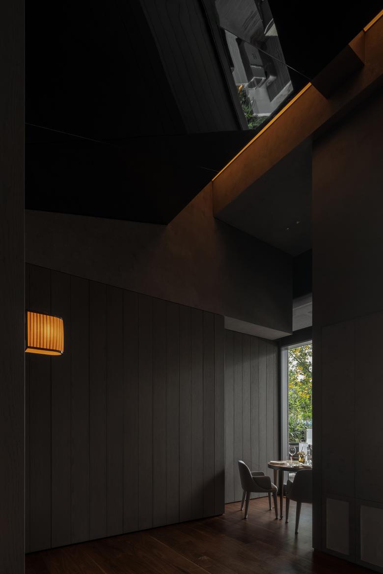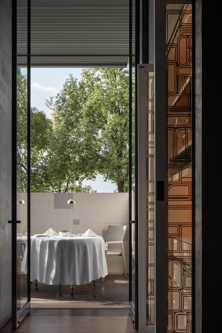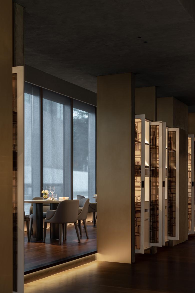 The opening dining area serves as the main source of revenues for the restaurant's operations. We have maximized its scale and strategically positioned it to link with the outdoor area to enhance the dining experience and enrich the overall atmosphere. Additionally, the placement of functional cabinets in the aisles not only increases privacy but also elevates the overall service quality, creating a casual yet luxury experience.