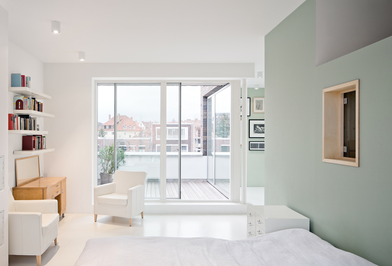 Das Volumen der Häuser gliedert sich, um private Terrassen und Dachgärten zu bilden. Der Garten wird gemeinsam als Spiel- und Freizeitfläche genutzt.