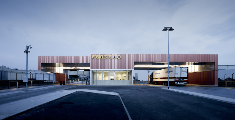 Das Werkstor wird in Zukunft eine klare Schnittstelle zwischen Werk und Umfeld definieren. Ergänzend wird der Prozess Verwiegung von LKW direkt in das Tor integriert und somit gegenüber früherer Praxis optimiert. Auch architektonisch bildet das Werkstor eine sichtbare Schnittstelle nach außen. Dazu wurde eine der Unternehmensphilosophie entsprechende Architektur entwickelt.