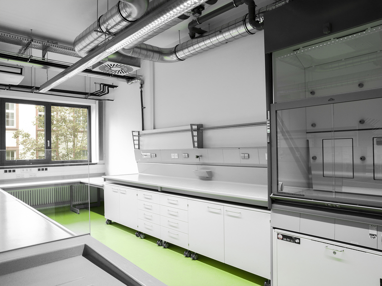 Der Neubau von Laboren im Campusbereich Gutfleischstraße entstand im Kontext der Ausweitung von Studienkapazitäten für den Fachbereich 04 - KMUB der Technischen Hochschule Mittelhessen. Im dreigeschossigen Gebäude mit den Abmessungen 22,5 x 17,1 m und einer Höhe von 12 m stehen Lehrenden und Studenten Laborräume, Büros sowie andienende Flächen zur Verfügung. Das konstruktive Rastermaß von 3,6 m und die Geschosshöhe von 3,75 m sind aus der Labornutzung abgeleitet. Zur Vermeidung von Erschütterungen bei häufiger Nutzung von Mikroskopen wurde das Tragwerk als massive Fertigteile-Stahlbetonkonstruktion konzipiert.