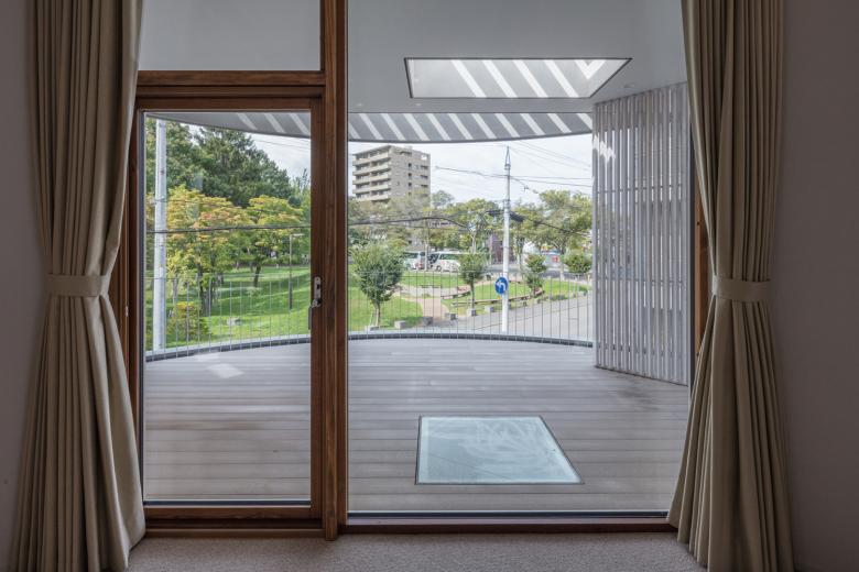 In Sapporo, where annual snowfall reaches about 6m, eaves are useful for areas such as those near the entrance as well as those near car garage. This way, we created a wide balcony, which also creates privacy for the second floor from passers-by. The second floor, which is the main area in the house, is visually connected with the park, invites the greenery of the park inside the house and creates a quality of a private garden