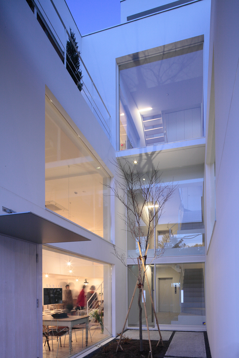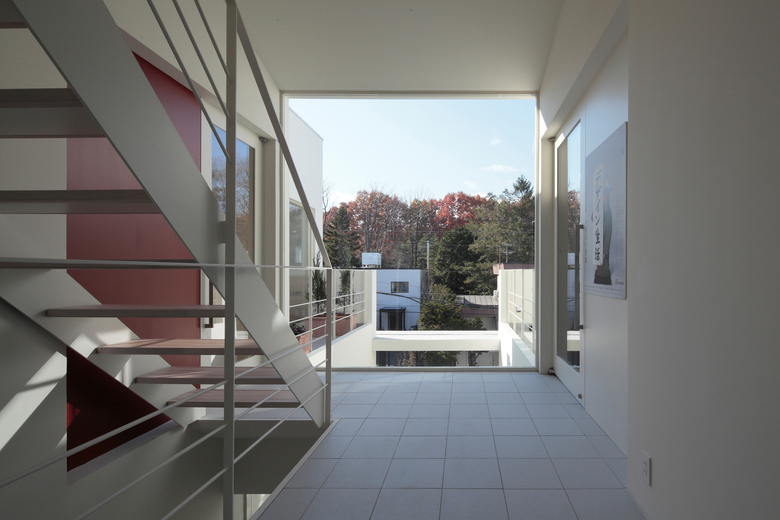 The site of this small commercial building can watch Maruyama Park loved by Sapporo citizen, and the store space sandwiches the small courtyard being aware of the connection with the park. This courtyard not only gives a loose sense of unity in the whole building but also produces the moderate sense of distance between stores.