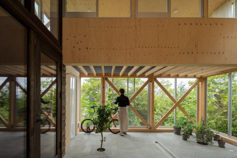 The configuration in which the insulated living space sandwiches the open space from above and below, which can be called "outside" in terms of the thermal environment, may seem inefficient in Hokkaido, where the goal has been to achieve uniform indoor temperatures during the winter. On the other hand, the "unevenness" of the indoor temperature due to the site conditions and the client's desire for "open spaces" inevitably created by the site conditions could lead to the creation of new activities throughout the four northern seasons.