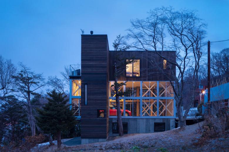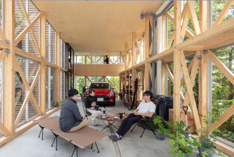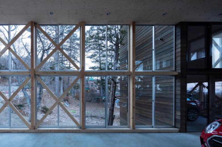 In fact, however, there is no condensation or freezing on the glass surfaces even during the harsh winter season, so the guests can enjoy their hobbies in peace during the day on sunny days. In the summer, the sliding doors open to allow cool mountain breezes to pass through, allowing you to enjoy events with friends regardless of the weather. In addition, the lower floor, which is semi-underground, provides a close view of the soil and flowers, the middle floor, which is semi-outside, provides a middle view of the neighborhood, and the top floor, which is raised to its legal limit, provides a distant view of the city center and the mountains.