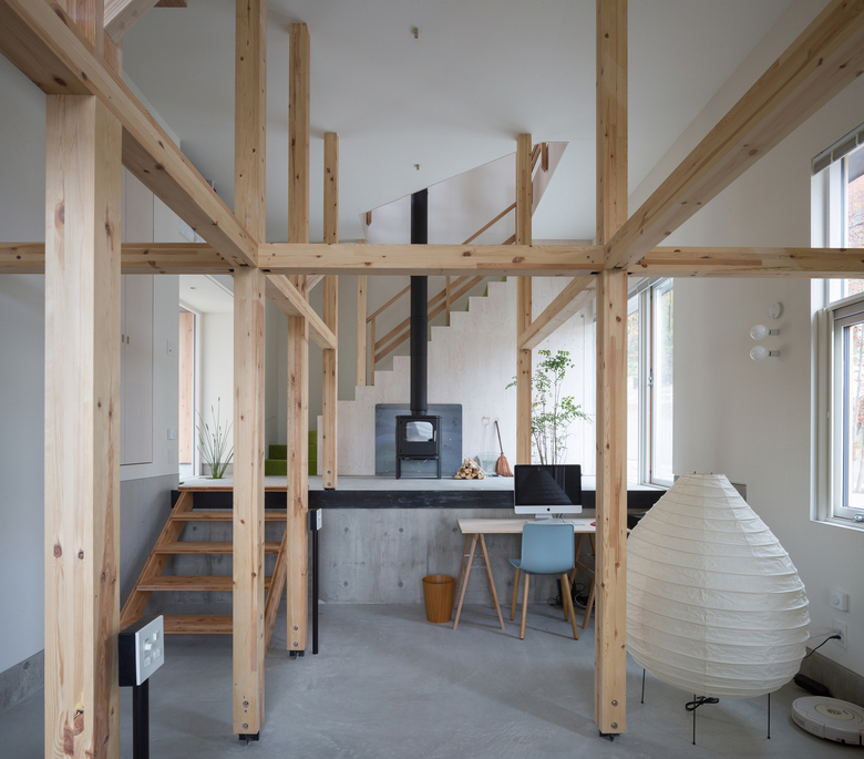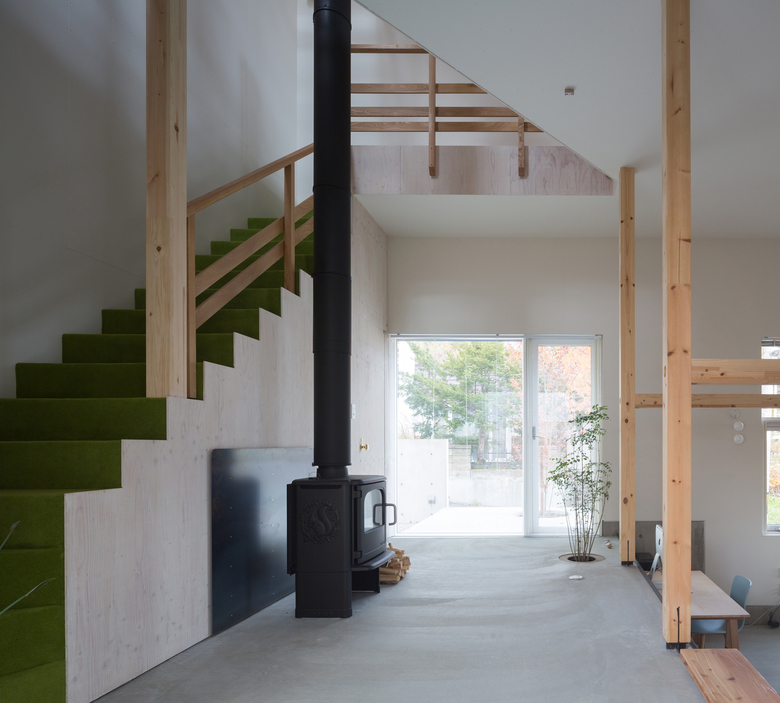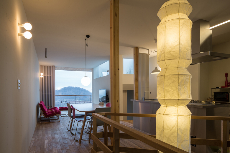 We secured flexibility that responds to changes in the first floor use, by setting the second floor as a main space with cooking, bathing, and washing all gathered in the upper level, so that we could keep the attractive view of Sapporo city center and Ishikari Bay.