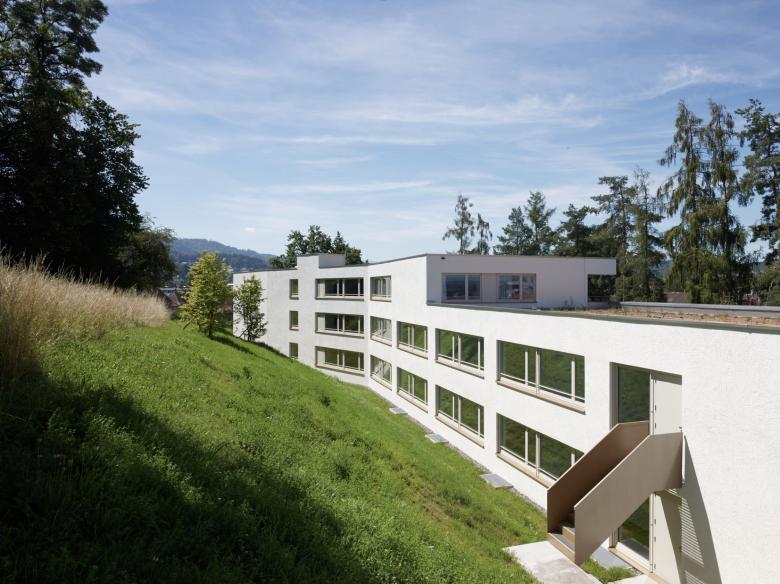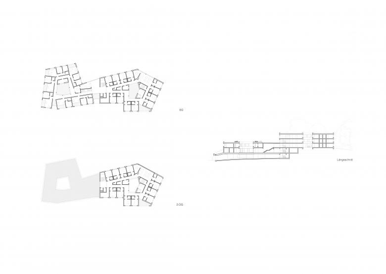 Sanft schmiegen sich die neuen Gebäudekörper dem Hang an und zeichnen in ihrer Geometrie die Topografie nach. Während sich beim Hauptbau der östliche Gebäuteteil in die Höhe entwickelt, legt sich der Westliche in den Hang. Verbunden sind die beiden Volumen durch einen eingeschossig in Erscheinung tretenden Verbindungstrakt. Durch diese spezielle Höhenentwicklung ist die freie Sicht auf die Stadt vom Lentulushügel aus weiterhin gewährleistet. Obwohl die beiden Volumen miteinander verbunden sind, treten sie städtebaulich als zwei Körper in Erscheinung.