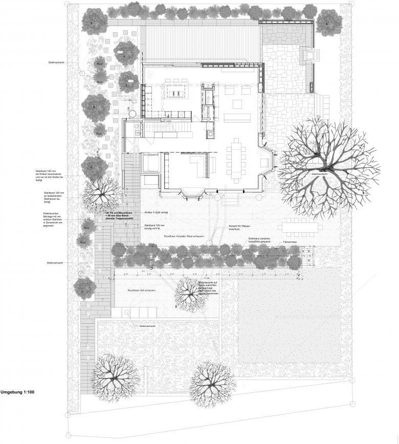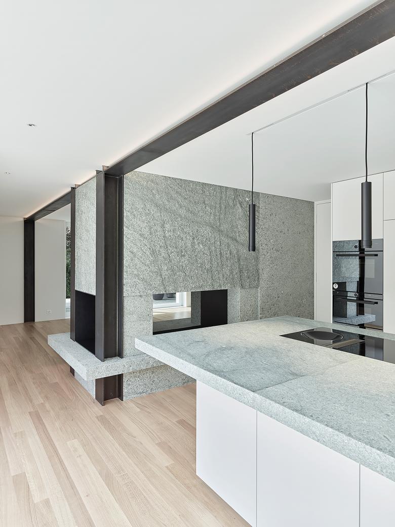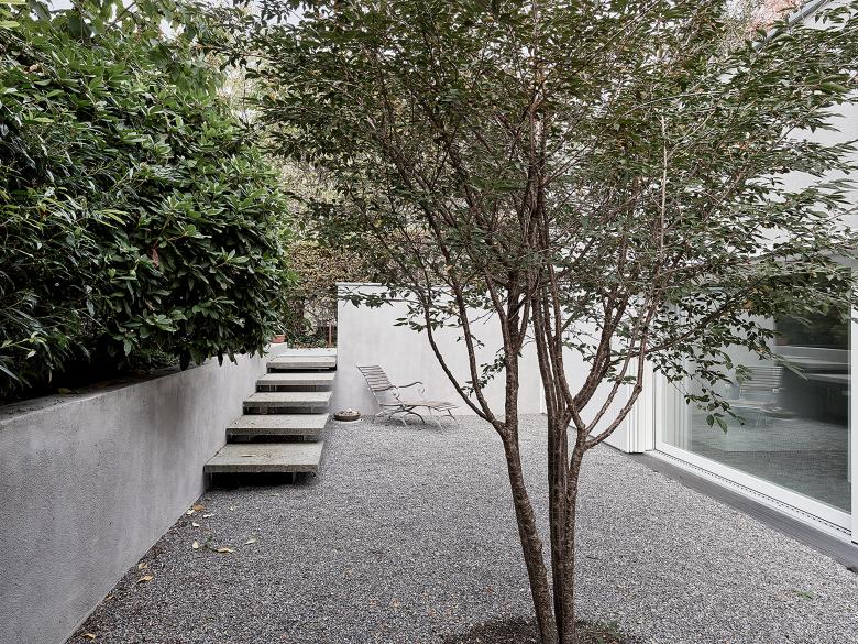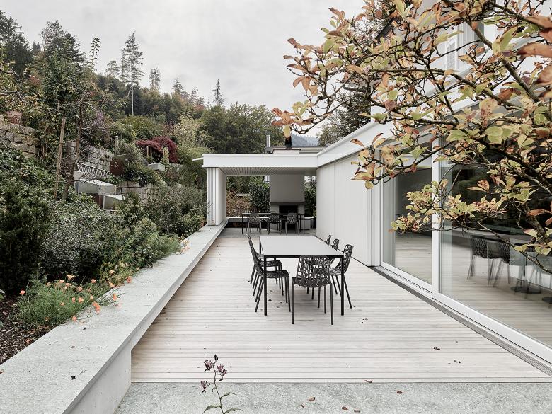 Ziel war das wunderschöne, hangseitige Morgenlicht über die neue Küche ins Haus fliessen zu lassen und den vorhandenen, üppigen Garten im Westen mit einem Neuen im Osten zu verbinden. Im Inneren des Hauses wurden die Tagstruktur bereinigt sowie sämtliche Wohnräume, Schlafzimmer und Nassräume den Bedürfnissen angepasst und mit neuen Boden- und Wandbelägen versehen und teilweise neu strukturiert.
