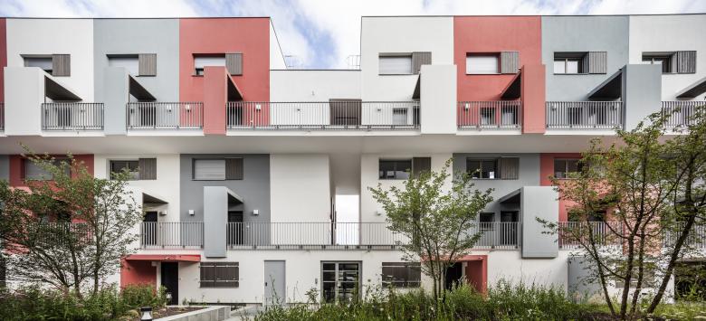 The re-interpreted detached houses located along the Moulin Vert street comprise a relational building with a street balcony facing the interior of the block, which serves to access housing while providing a co-living space and promotes cohesion and exchange among inhabitants.