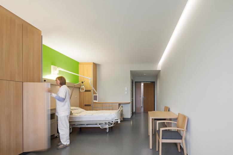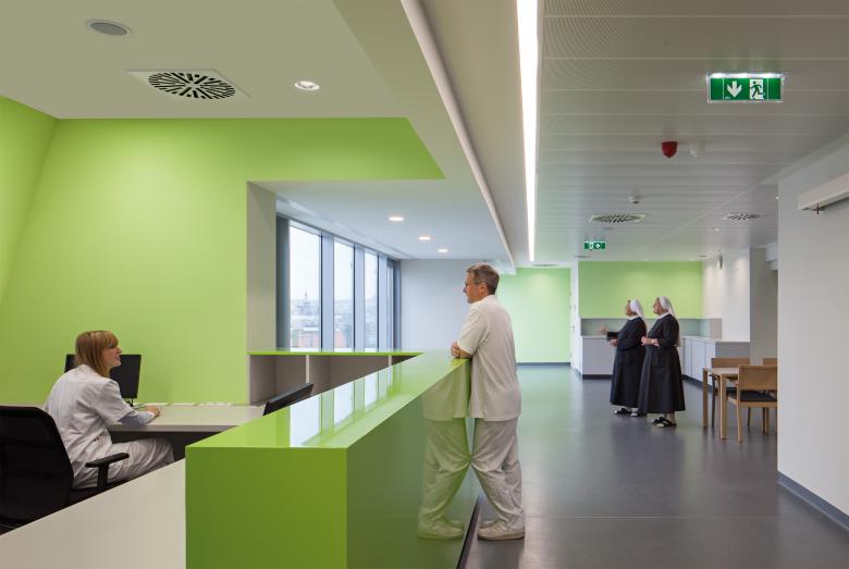 Bei dieser komplexen Aufgabe ging es nicht nur darum, die Bedürfnisse der 40 Klosterschwestern, der PatientInnen und des Personals in den Vordergrund zu stellen, sondern durch sensible Formensprache eine Architektur zu schaffen, die Zukunft und Vergangenheit im Jetzt zusammenführt.