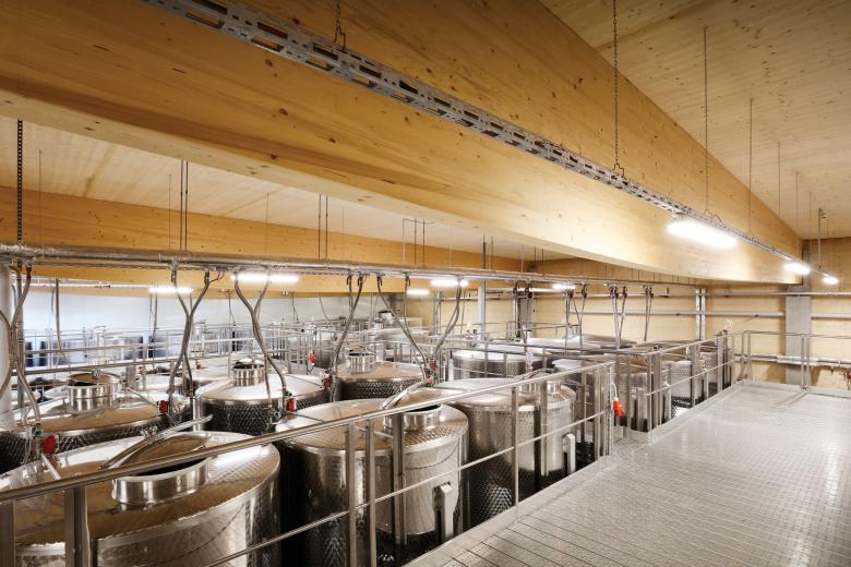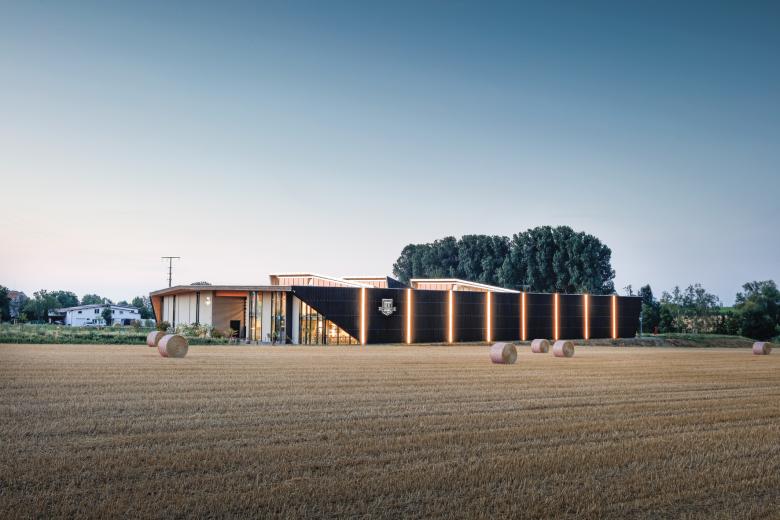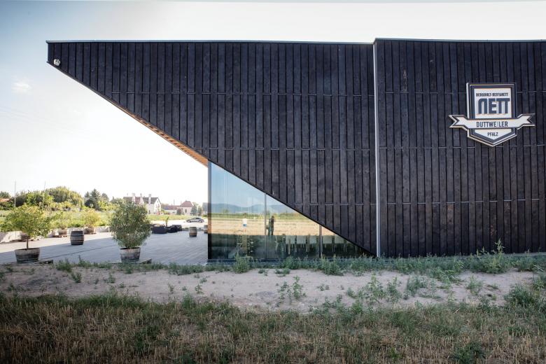 Leicht, modern, großzügig, repräsentativ und reduziert liegt der Bau für das Weingut Nett in der Pfalz: Zwei langgestreckte Hallen verbunden durch eine überdachte Passage wirken wie ein geometrischer Rochen, der sich über der Landschaft entfaltet. In dessen Inneren reifen auf 4.500 m² die Weine des erfolgreichen deutschen Weingutes. Mit Anspruch an höchste Qualität beauftragten die Winzer einen kompletten Neubau, in dem sowohl die gesamte Produktion als auch Verkauf, Lager, Büro und Wohnraum für die Winzerfamilie untergebracht sein würden.