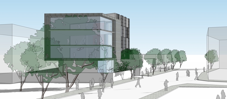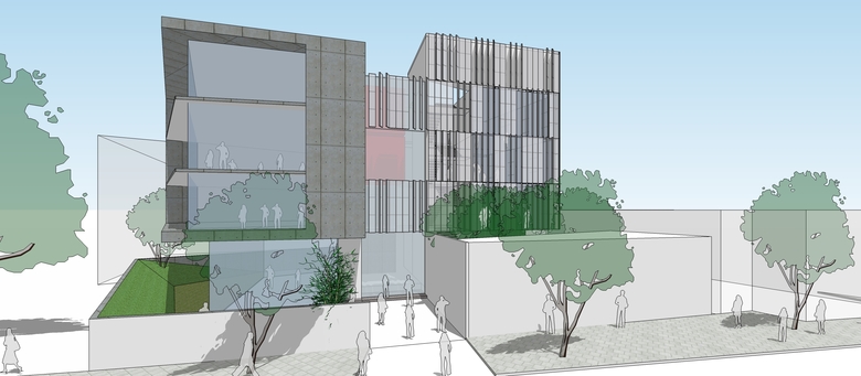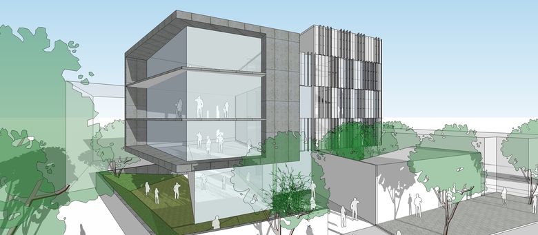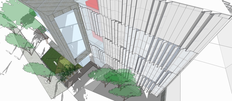 It provided vistas of the neighboring plot which houses a beautiful old banyan tree. spaces in the ground floor enjoy the spillover spaces into the landscaped areas designed in the area abutting the building and the compound wall. Varying volumes in spaces such as the reception add more interest.