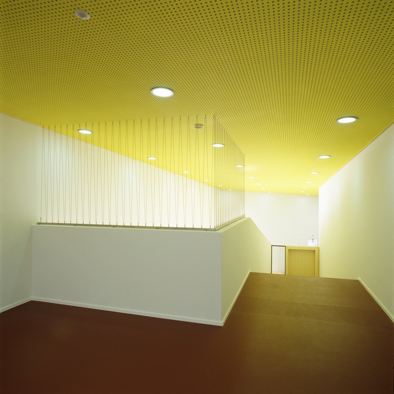 Die innere Erschliessung führt ähnlich einer Dorfgasse durch das Gebäude hindurch. Sie weitet sich aus und verengt sich. Die Ausweitungen schaffen klare Orientierungsorte. Der Erschliessungsbereich wird zum kollektiven Raum. Er bietet Platz zum Spielen. Die beiden Wohngruppen sind auf dem gleichen Prinzip aufgebaut.