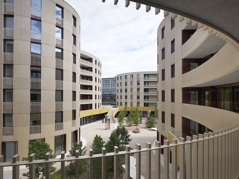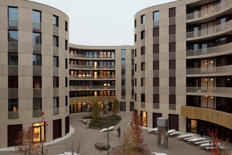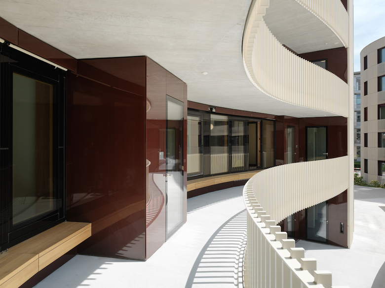 Im Erdgeschoss sind Gemeinschaftsräume, ein Zeichensaal für die ETH, eine Kinderkrippe sowie
