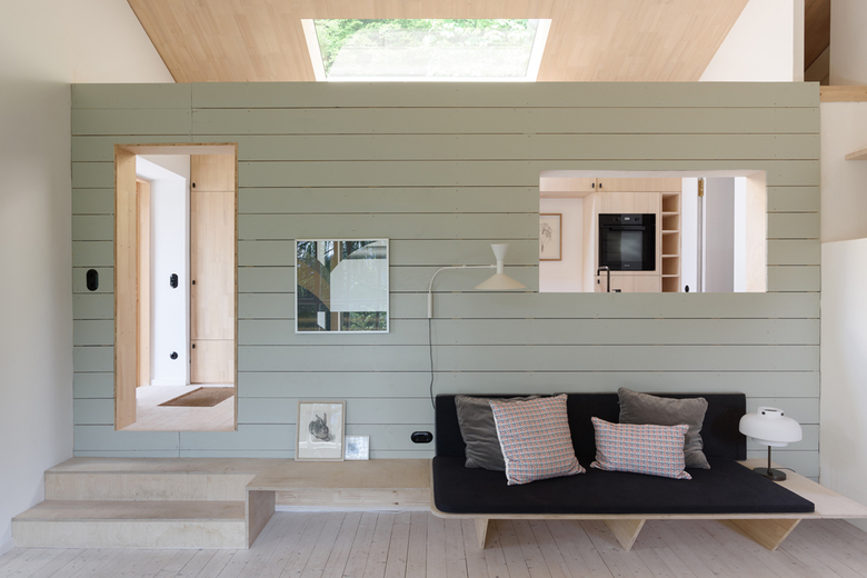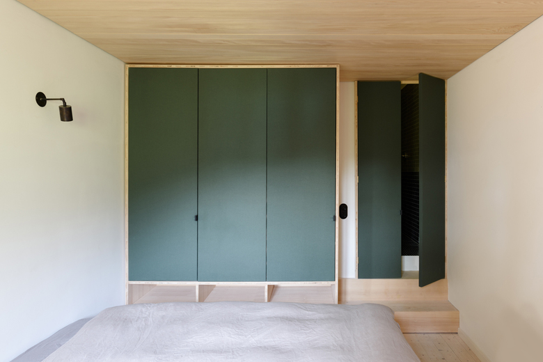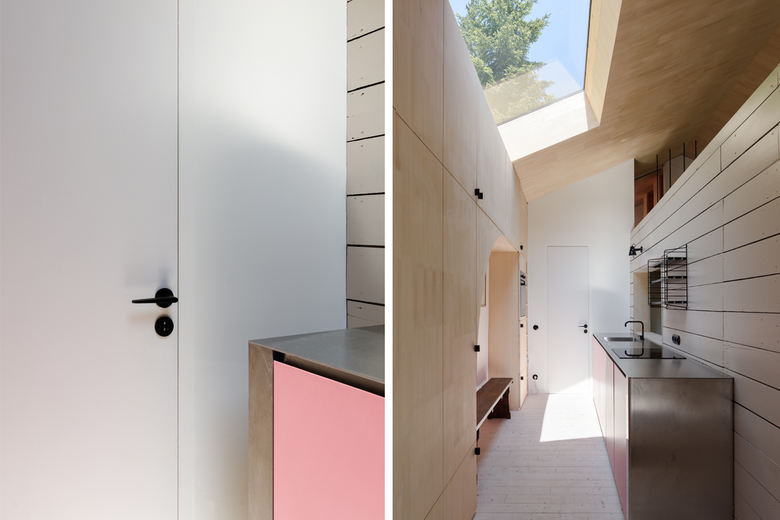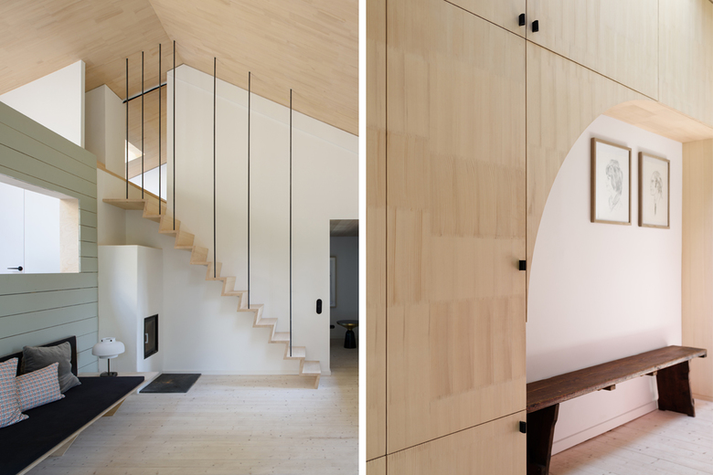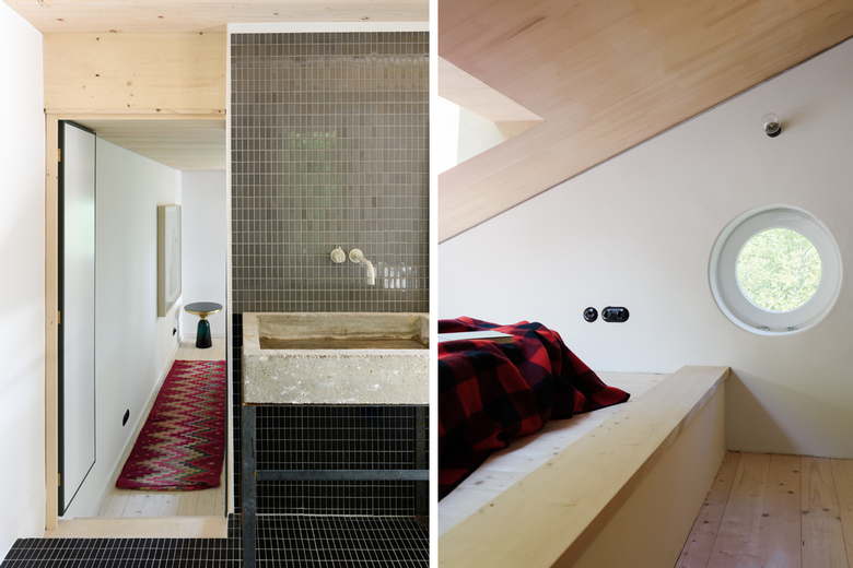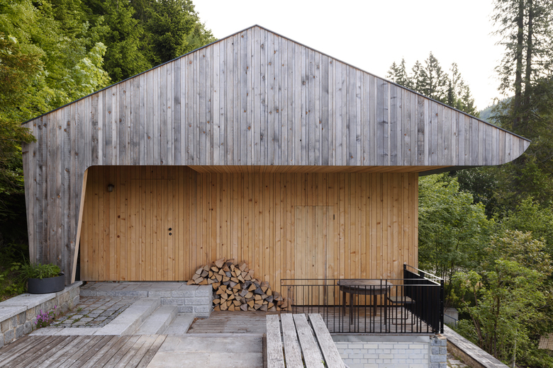 Die weitläufige Waldlandschaft in Urfeld am Walchensee bildet den Hintergrund für das von Arnold / Werner kernsanierte und neu strukturierte Ferienhaus aus den 1960er-Jahren. Im Mittelpunkt steht die Idee, vorhandene und lokale Ressourcen einzusetzen, um einem baufälligen Altbau neues Leben einzuhauchen. Und so wurde für den neuen Dachstuhl, die sanft geschwungene Gebäudehülle und die Einbaumöbel ausschließlich Weißtanne aus der nahegelegenen Jachenau zum Einsatz kam. Wesentlich für die geborgene Raumatmosphäre sind die Konzentration auf nur wenige natürliche Materialien, die zurückhaltende Farbigkeit sowie feinsinnige Einrichtungsdetails. Dank der dachintegrierten Photovoltaikpaneele, der Abwasserreinigungsanlage und des Heizkamins lässt sich das Haus – sommers wie winters – autark nutzen.