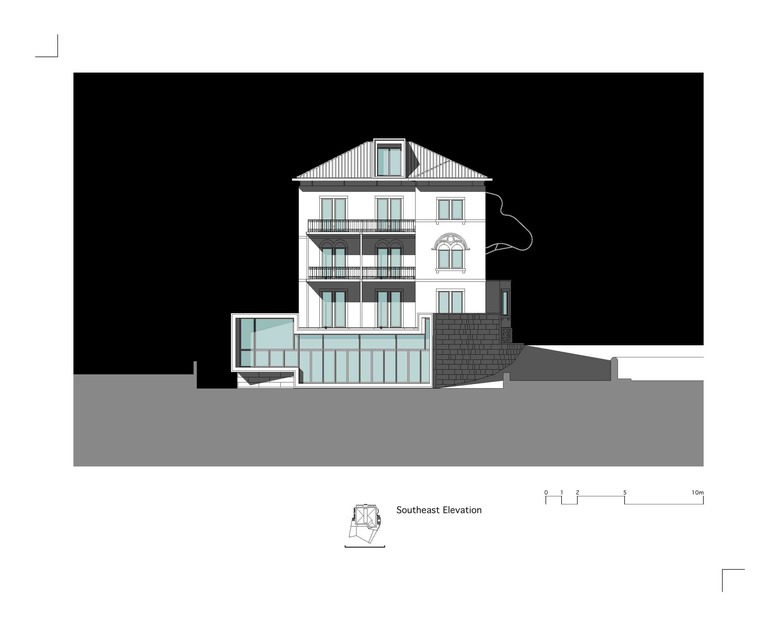 We chose to preserve the existing house and its relations to the land, not so much because of its architectonical traits, which are modest, but because it obeys a characteristic typology of the Estoril area, whose specimens are being demolished and replaced by big apartment or office buildings which fill the totality of their lots, not leaving any room for garden areas and blocking visual interaction.