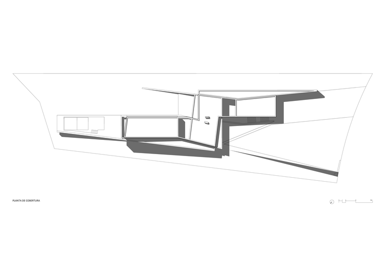 It has assumed a serpentine shape, sliding across the slope, leaning whether to one longitudinal limit or the other, therefore assuring privacy where needed and allowing the enjoyment of the landscape when wanted.