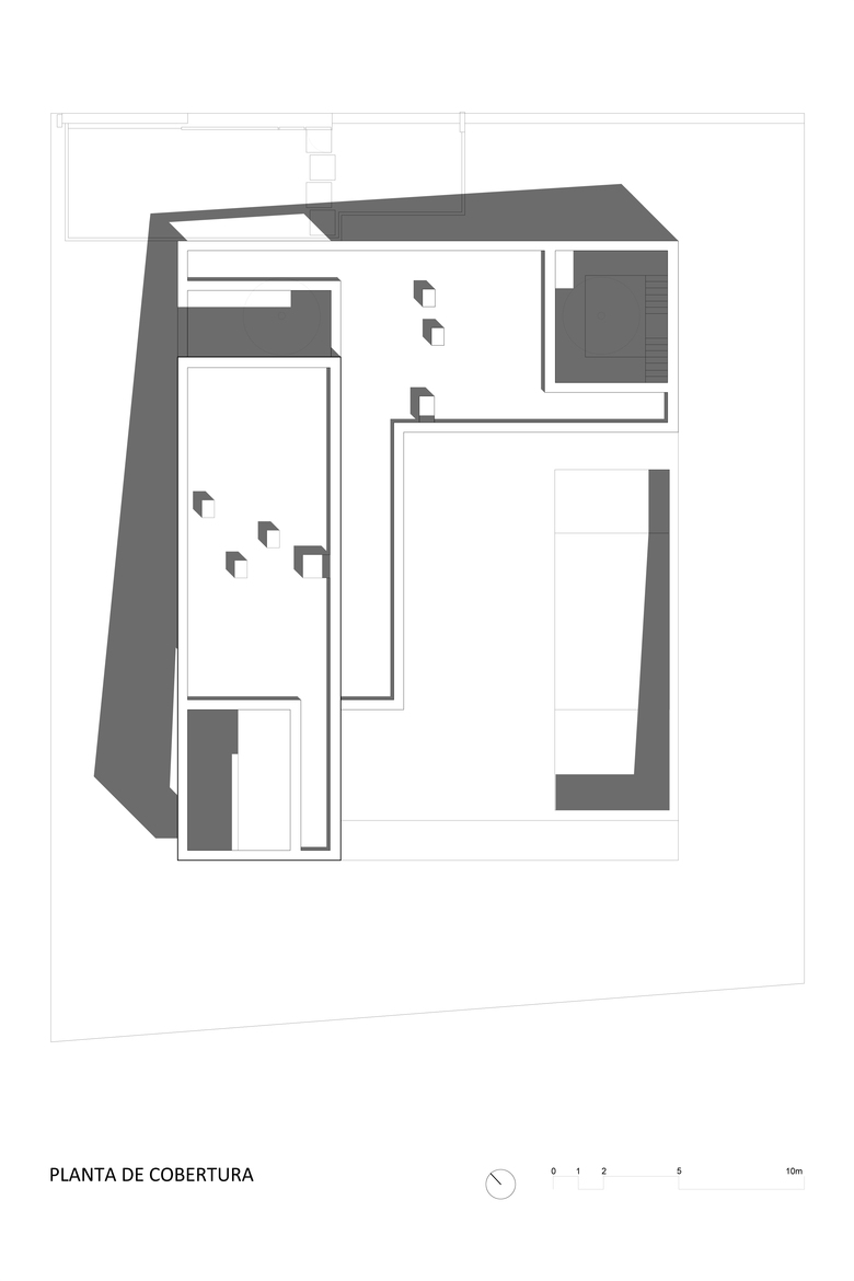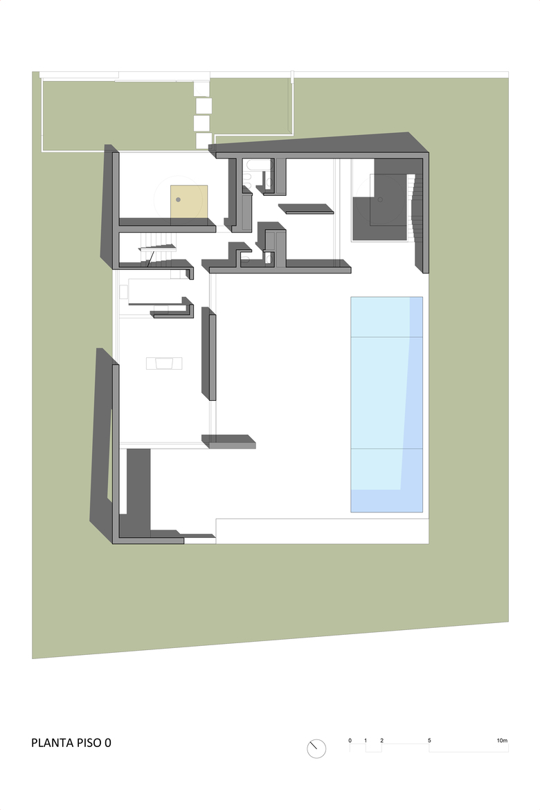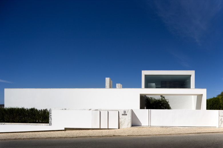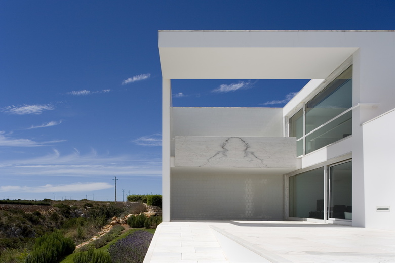 The highest and longest volume is located in the north to create an protect a central marble patio from the strong and permanent winds. An “L” shaped bedroom wing helps creating privacy from the acess road into the pool. Inside and outside spaces are always articulated by courtyards, a typology from the moorish legacy, while filtering views to selected fragments of untouched landscape.