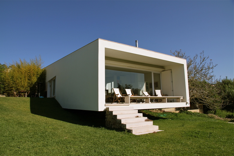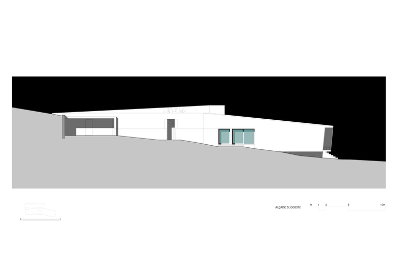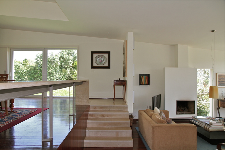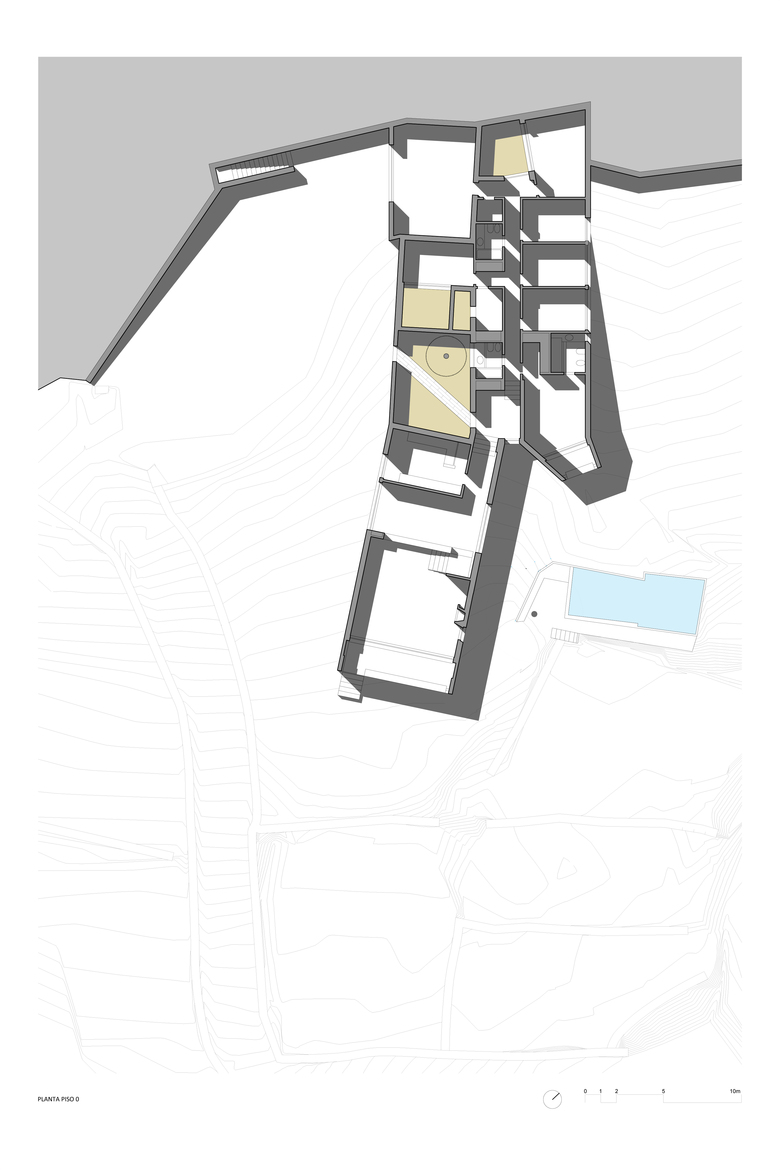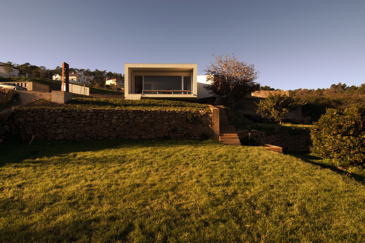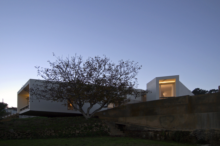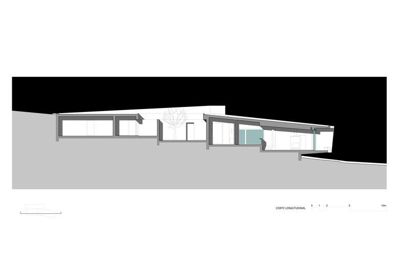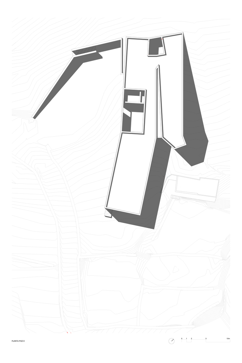 The site's natural beauty dictated the project. The house develops in an intimate relation with the ground, penetrating it as the slope increases and eventually becoming part of the mountain where one can walk; then it is displaced while descending, reappearing on the slope.