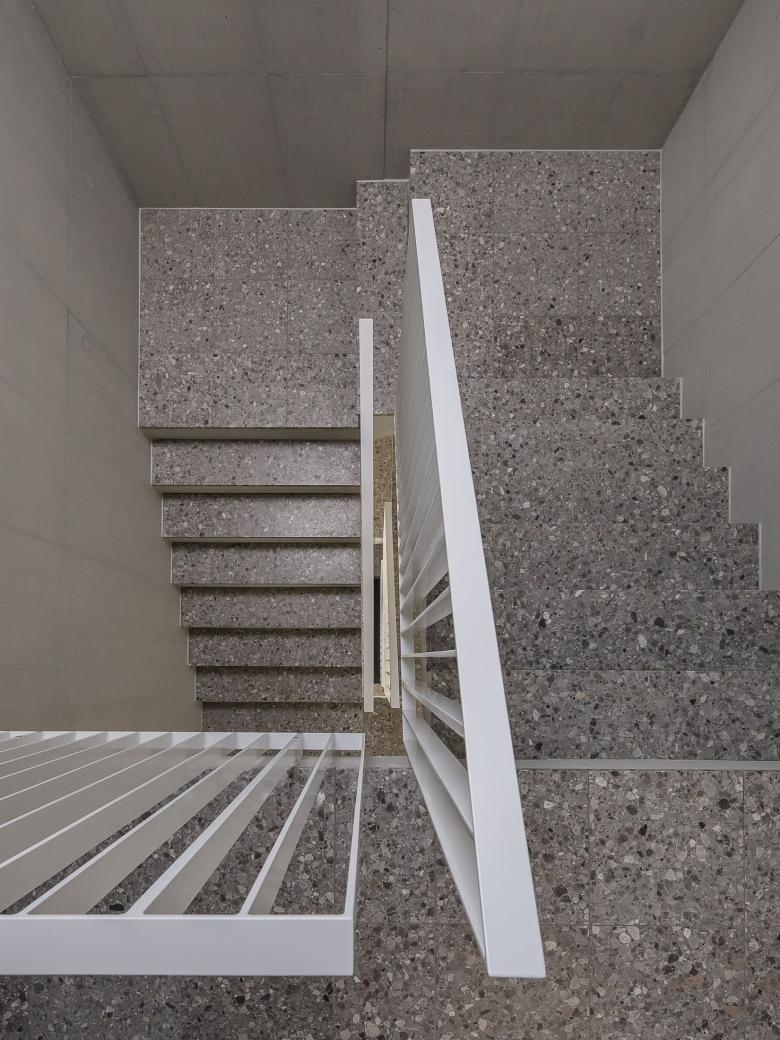 Die Positionierung des rechteckigen Grundrisses ist eine Reaktion auf die Strassenkreuzung und die optimale Gestaltung der Freiräume im Zusammenspiel mit der Eingangssituation. Der Neubau fügt sich selbstverständlich an dieser Verzweigung ein und schliesst die vorhandene Baulücke auf der Parzelle unaufgeregt. Das luftige Erdgeschoss dient als Adresse und nimmt die Parkplätze, in Verlängerung der bestehenden Garagen, adaptierend auf. In den oberen Geschossen des geplanten Neubaus sind zwei Wohnungen unterbracht, welche über ein Treppenhaus mit Lift erschlossen werden. Die erste Wohnung ist eine Terrassenwohnung im Obergeschoss, die Dachgeschosswohnung beinhaltet eine zentrale Loggia, die den Wohnbereich verbindet. Anhand der Ost-Westausrichtung sind beide Wohnungen als «Durchwohnen» konzipiert, was zu einem gut belichteten Grundriss mit wunderbaren Sichtbezügen führt.