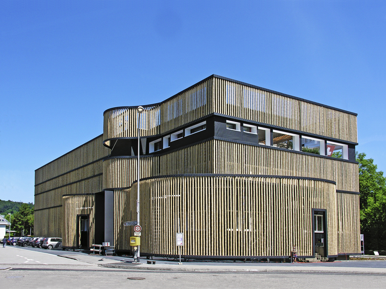 Um den Arbeitsalltag nicht zu stören, wird eine ökologische Sanierung mit verkürzter Bauzeit gewünscht. Folglich entschied sich die Complemedis AG für eine Aussenwärmedämmung aus vorgefertigten Ele-menten mit 50cm breiten Strohballen. Die Beschattung der bestehenden Fensterbänder erfolgt durch eine vorgehängte Bambusfassade, die über die ganze Gebäudehöhe montiert wird.